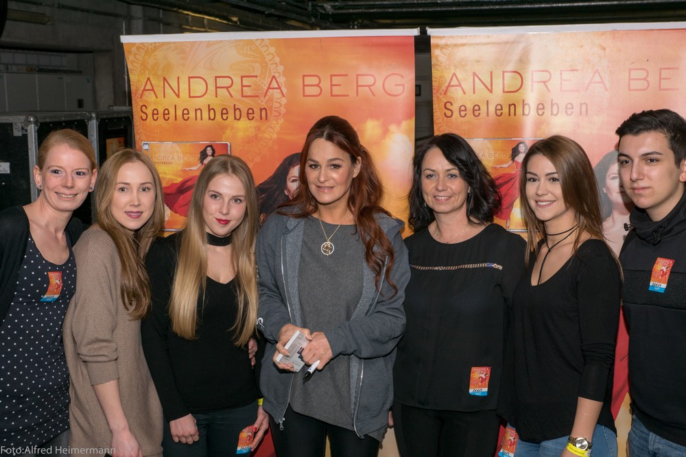 Seelenbeben mit Andrea Berg, Mannheim SAP-Arena Mannheim, 21.1.2017 10000 Besucher erlebten Andrea Berg bei ihrem Konzert in der Mannheimer SAP Arena und wurden bestens unterhalten. 2 junge Damen durften mit Andrea die Bühne betreten und ein Lioed mit ihr singen, man merkte ihnen die Freud an. Andrea fordete gegen Ende der Show zum Discofox auf und rief zur Damenwahl auf, was von ihren 3 Tänzerinnen und den beiden Backround Sängerinnen befolgt wurde, sie holten sich Männer aus dem Publikum und tanzten auf der Bühne, während Andrea sang. Ein neuer Gag der Show, der gut ankam. |