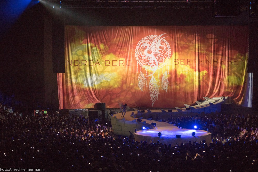 Seelenbeben mit Andrea Berg, Mannheim SAP-Arena Mannheim, 21.1.2017 10000 Besucher erlebten Andrea Berg bei ihrem Konzert in der Mannheimer SAP Arena und wurden bestens unterhalten. 2 junge Damen durften mit Andrea die Bühne betreten und ein Lioed mit ihr singen, man merkte ihnen die Freud an. Andrea fordete gegen Ende der Show zum Discofox auf und rief zur Damenwahl auf, was von ihren 3 Tänzerinnen und den beiden Backround Sängerinnen befolgt wurde, sie holten sich Männer aus dem Publikum und tanzten auf der Bühne, während Andrea sang. Ein neuer Gag der Show, der gut ankam. |