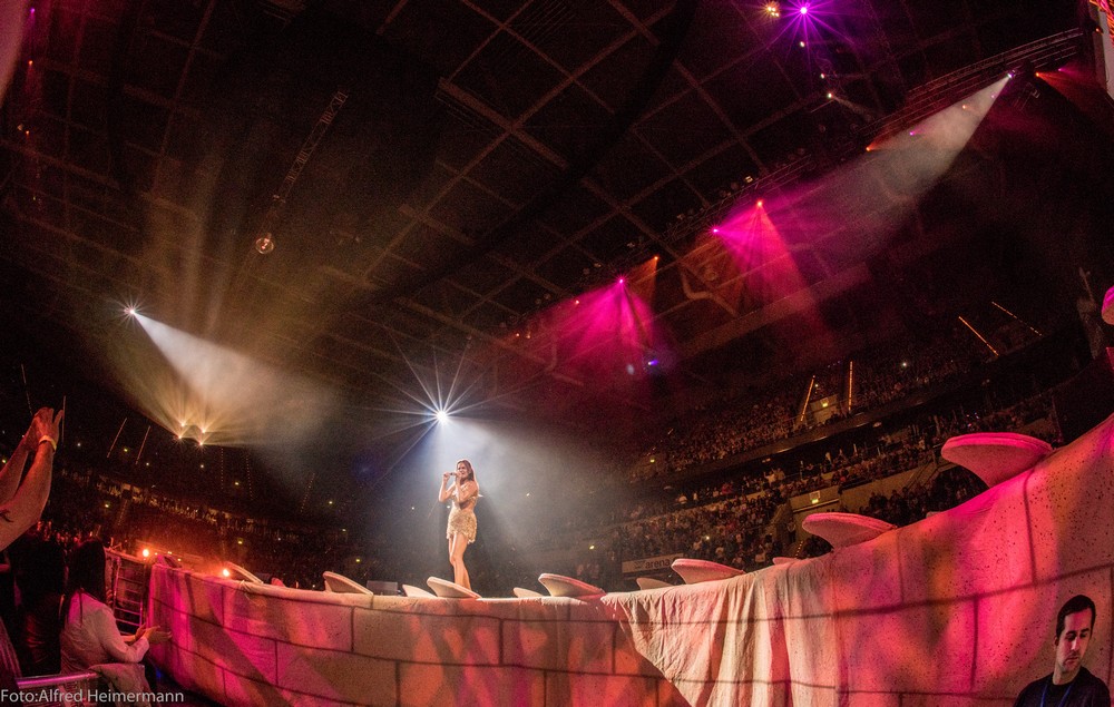 Seelenbeben mit Andrea Berg, Mannheim SAP-Arena Mannheim, 21.1.2017 10000 Besucher erlebten Andrea Berg bei ihrem Konzert in der Mannheimer SAP Arena und wurden bestens unterhalten. 2 junge Damen durften mit Andrea die Bühne betreten und ein Lioed mit ihr singen, man merkte ihnen die Freud an. Andrea fordete gegen Ende der Show zum Discofox auf und rief zur Damenwahl auf, was von ihren 3 Tänzerinnen und den beiden Backround Sängerinnen befolgt wurde, sie holten sich Männer aus dem Publikum und tanzten auf der Bühne, während Andrea sang. Ein neuer Gag der Show, der gut ankam. |