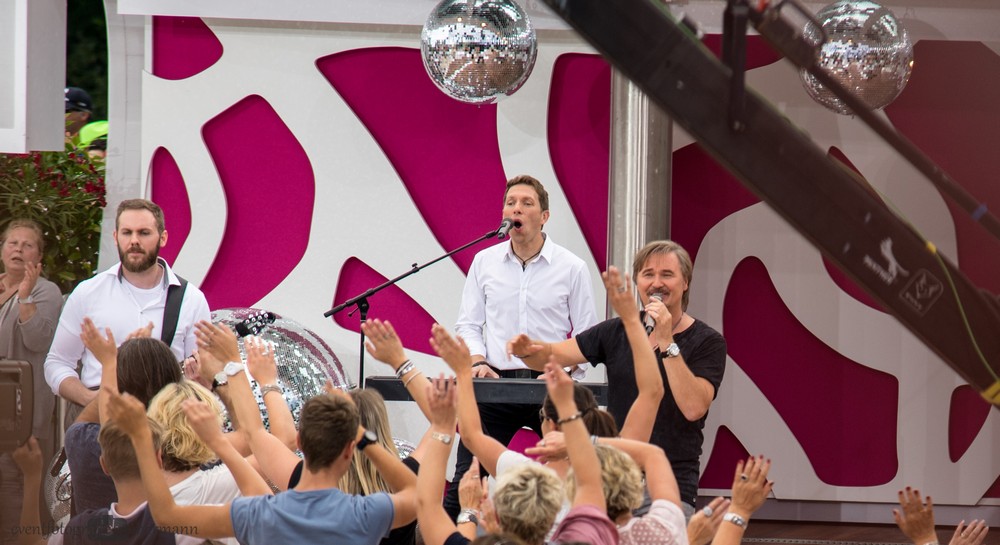ZDF Fernsehgarten 2016 17.7.2016 Lerchenberg Mainz 6500 Besucher waren zum Fernsehgarten am 17.7. gekommen, der unter dem Motto Discofox und Rätsel stand. Viele Schlagerkünstler waren dort, Vanessa May, Alessa, Julia Lindholm, Annmarie Eilfeld, Christina Bach, NikP, Die Amigos, Norman Langen, Olav und Bausch |