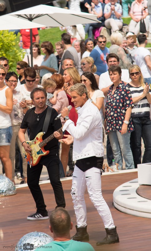 ZDF Fernsehgarten 2016 17.7.2016 Lerchenberg Mainz 6500 Besucher waren zum Fernsehgarten am 17.7. gekommen, der unter dem Motto Discofox und Rätsel stand. Viele Schlagerkünstler waren dort, Vanessa May, Alessa, Julia Lindholm, Annmarie Eilfeld, Christina Bach, NikP, Die Amigos, Norman Langen, Olav und Bausch |